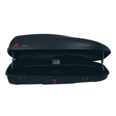 Über Aufsteller lässt sich die matt schwarze Dachbox rechts öffnen und nutzerfreundlich beladen. Beiliegende Spanngurte verhindern ein Verrutschen des Gepäcks. Das hochwertige Material, ein UV-beständiges Polystyreen, und die Diebstahlsicherung durch Zentralverriegelung runden den durchweg positiven Gesamteindruck der G3 Krono 400 ab.