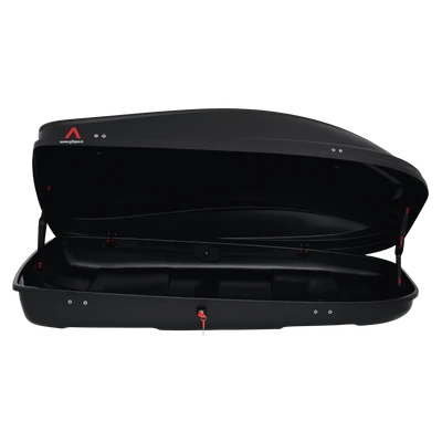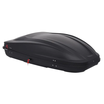Über Aufsteller lässt sich die matt schwarze Dachbox beidseitig öffnen und nutzerfreundlich beladen. Beiliegende Spanngurte verhindern ein Verrutschen des Gepäcks. Das hochwertige Material, ein UV-beständiges Polystyreen, und die Diebstahlsicherung durch ein Schloss runden den durchweg positiven Gesamteindruck der G3 Spark 400 ab.