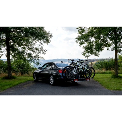 Des weiteren verfügt der Träger über einen Abklappmechanismus, der auch bei montierten Fahrrädern den Zugang zum Kofferraum ermöglicht.
