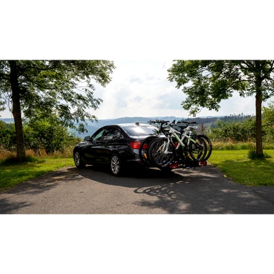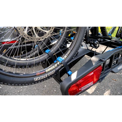 Der Hapro Atlas 3 Premium Blue ist für 3 Fahrräder und eine maximale Zuladung von 60 kg konzipiert. Die Montage gestaltet sich kinderleicht: Setzen Sie ihn einfach auf die Anhängerkupplung und befestigen Sie ihn mit einem Spannhebel. Flexible Rahmenhalter montieren die Fahrräder sicher am Haltebügel, der sich zwischen erstem und zweitem Fahrrad befindet. Spannbänder fixieren die Räder in den verstellbaren Radschienen. Aufgrund der Position des Haltebügels können Sie die Fahrräder bequem direkt am Fahrradträger befestigen.