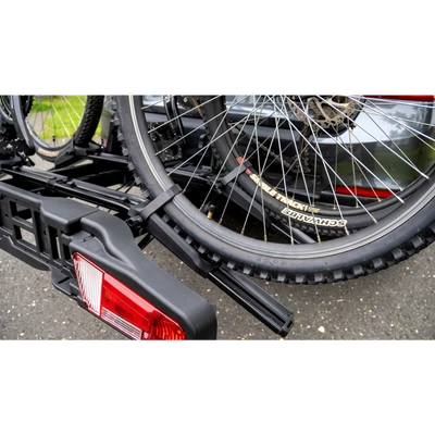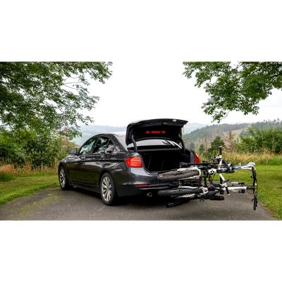 Kippsystem: Das Kippsystem ermöglicht es Ihnen, den Zugang zum Kofferraum, auch wenn das Fahrrad und der Fahrradträger an der Anhängerkupplung montiert sind. Dies ist besonders praktisch, wenn Sie Gegenstände aus dem Kofferraum benötigen.