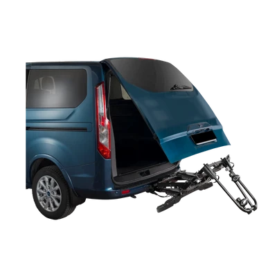 Abklappen an Vans und Transportern mit Heckklappen: Das Kippsystem ermöglicht es auch, den Träger an langen Transporter-Heckklappen zu kippen, was die Benutzerfreundlichkeit und Flexibilität erhöht.