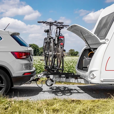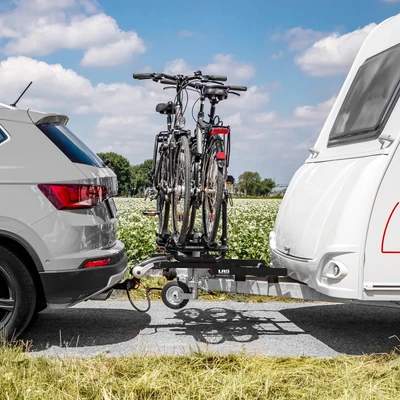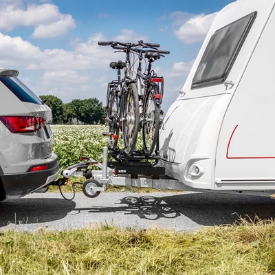 Mit dem Fahrradträger BC260 black für die Anhängerdeichsel werden die Fahrräder direkt auf der V-Deichsel Ihres Wohnanhängers transportiert. Mit diesem modernen Deichselträger können 2 Fahrräder oder 2 E-Bikes mit einer Gesamtlast von 60 kg befestigt werden (max. 30 kg pro Schiene).