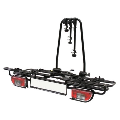 Durch den Abklappmechanismus lässt sich bei den meisten PKW ein Zugang zum Kofferraum ermöglichen, wenn die Fahrräder auf dem Fahrradträger montiert sind. Der Träger wird mit Hilfe eines Spannhebels auf die Kupplungskugel montiert. Inklusive europäischer Betriebserlaubnis und Diebstahlsicherung.