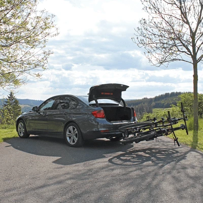 Der TRAVELLER III FIXMATIC befördert bis zu 3 Fahrräder die ein Gesamtgewicht von bis zu 60 kg haben können. Somit eignet er sich auch hervorragend für den Transport von E-Bikes oder Pedelecs. Der Fahrradträger lässt sich bequem per Fußpedal abklappen und ermöglicht Ihnen auch mit montierten Fahrrädern den Zugang zum Kofferraum. Weiter sichern Sie sowohl den Fahrradträger als auch die Fahrräder durch die integrierten Schlösser gegen Diebstahl. Wenn Sie ihren TRAVELLER III FIXMATIC einmal nicht benötigen, lässt sich dieser platzsparend zusammenklappen und in der mitgelieferten Tasche aufbewahren.
