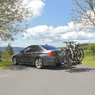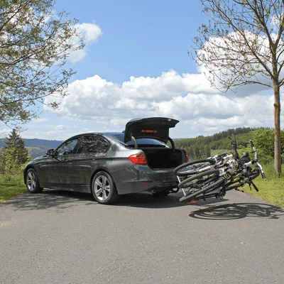 Der TÜV geprüfte Alcor verfügt über einen Abklappmechanismus, der auch bei montierten Fahrrädern den Zugang zum Kofferraum erlaubt. Durch integrierte Schlösser sichern Sie den Träger am Fahrzeug und die Fahrräder am Rahmen vor ungewünschtem Zugriff.