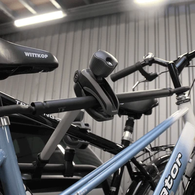 Die Befestigung erfolgt zwischen Sattelstütze und Lenkkopf und eignet sich für einen Abstand von 58 cm bis 67 cm.