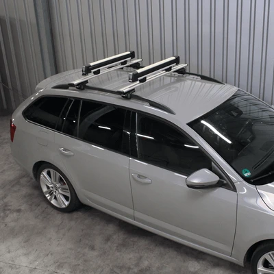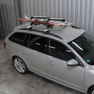 Der Skiträger transportiert dank der 75 cm breiten Auflagefläche mit weichem Gummiprofil, sechs Paar Ski oder vier Snowboards. Durch integrierte Schlösser, lässt sich der TÜV-geprüfte SnowPack 6 und die Ski oder Snowboards am Dachträger sichern.