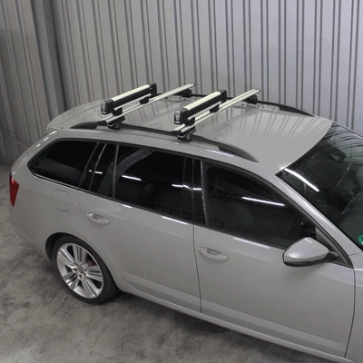 Der aus Aluminium gefertigte Skiträger besticht durch Design und Form. Mit ihm transportieren Sie, dank der 50 cm breiten Auflagefläche mit weichem Gummiprofil, vier Paar Ski oder zwei Snowboards. Die integrierten Schlösser sichern die Ski oder Snowboards und den TÜV-geprüften SnowPack 4 am Dachträger.