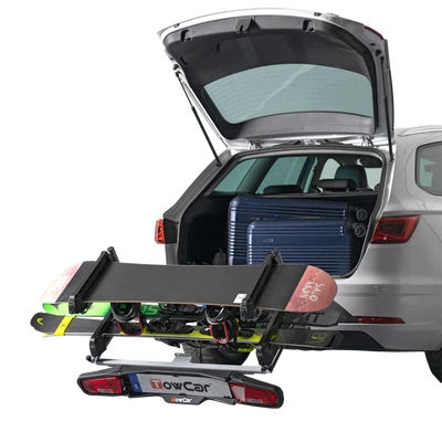 Der Skiträger TowCar Aneto – für die Montage direkt auf der Anhängerkupplung.