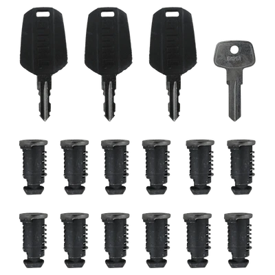 Mit Hilfe des Schloss-Satzes ist es möglich all Ihre Thule Produkte mit nur einem Schlüssel zu öffnen und abzuschließen. Im Lieferumfang befinden sich 12 Schlösser mit gleichen Schließzylindern und einem Zentralschlüssel.