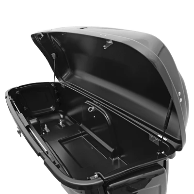 Ob für den Winterurlaub oder den wöchentlichen Einkauf mit der Familie: Die TÜV- und GS-geprüfte BackBox bietet mit einem Fassungsvermögen von Minimum 300 Litern für jeden Anlass genügend Stauraum. Ösen, Zurrbänder und Schaumstoffeinlagen im Inneren sichern Ihre Güter während des Transports. Dank hochglänzendem, kratzfestem Kunststoff und modernster LED-Technik ist die Transportbox auch ein optisches Highlight.