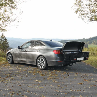 Sie montieren die BackBox mit wenigen Handgriffen werkzeuglos auf dem Tragemodul BackCarrier. Die Abklappfunktion ermöglicht Ihnen auch bei montierter Box Zugang zum Kofferraum – selbst bei Kleintransportern wie dem VW T4/T5 oder dem Mercedes Viano.